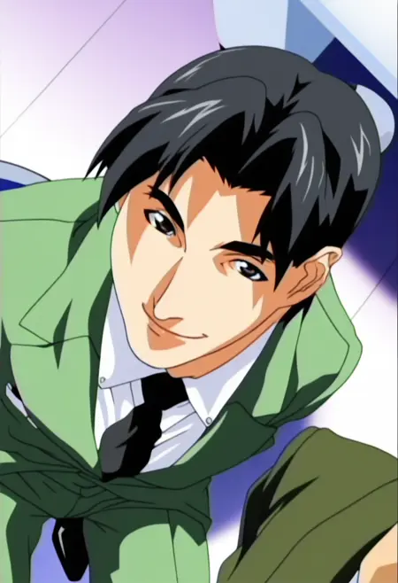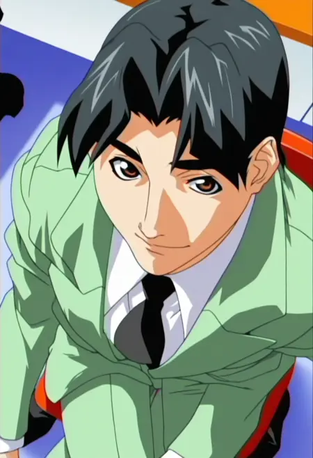ポジティブ: 1man, solo, Yusuke Nakanishi, mature male, adult, 35 years old, middle parted bangs, white shirt, black hair, short hair, thick eyebrows, black necktie, formal, suit, green jacket, green pants, black shoes, strong body, strong chin, strong neck,