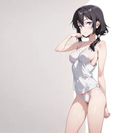 kuroeoberu, black hair, blue eye, medium breasts,