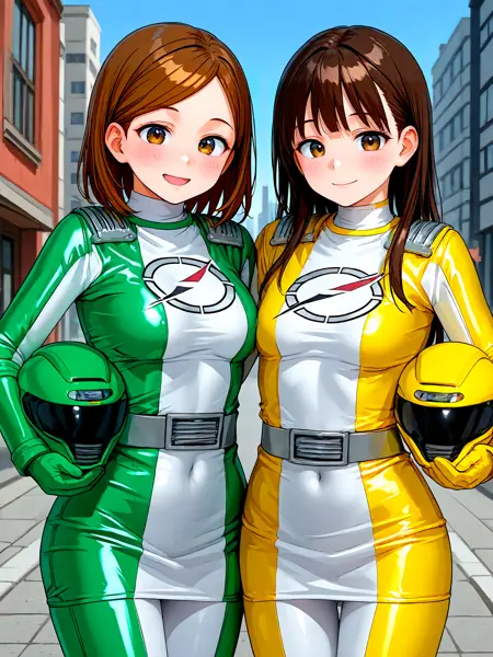 トレーニングデータ内の光沢のある衣装を含む画像には、以下のタグが付けられており、個人の好みで私はすべてのプロンプトにこれらを追加しています: