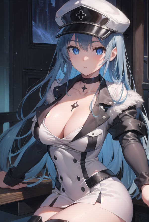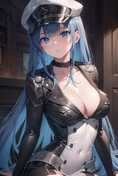 boots, choker, cleavage, collarbone, hat, ice, military, military uniform, peaked cap, thigh boots, thighhighs, uniform,