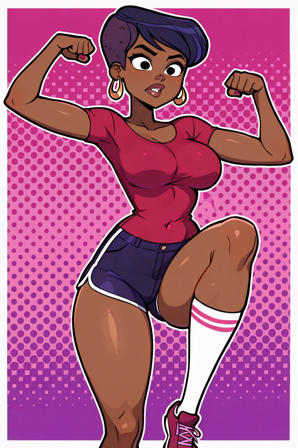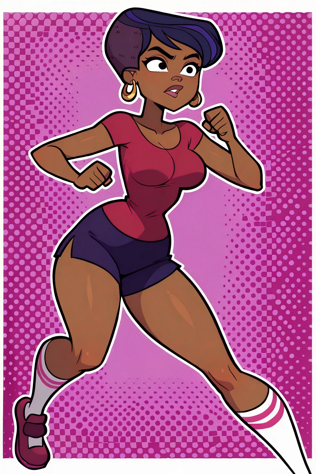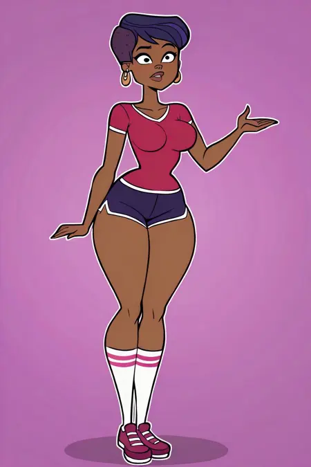 | 학습된 단어 | StephanieTDRR, 1girl, dark skinned female, short dark blue hair, red-magenta top, dark blue-purple shorts, knee-high white socks with magenta-pink stripes, gold hoop earrings, black eyes, magenta-pink shoes, lips, big lips, stephanie (tdi),복사됨! |