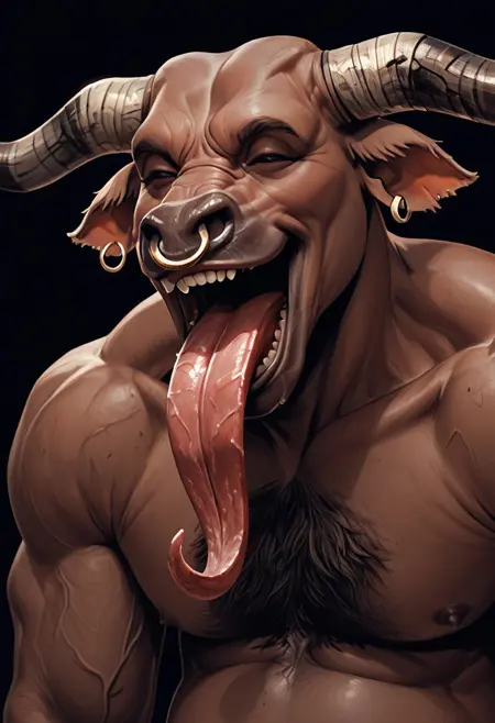 minotaur, horns, muscular, nose ring, earrings, muscular male