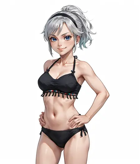 该LoRA在强度1下效果最佳。默认服装已深度嵌入模型中。如果你想让她穿着其他服装,请将相关标签放入否定提示中。