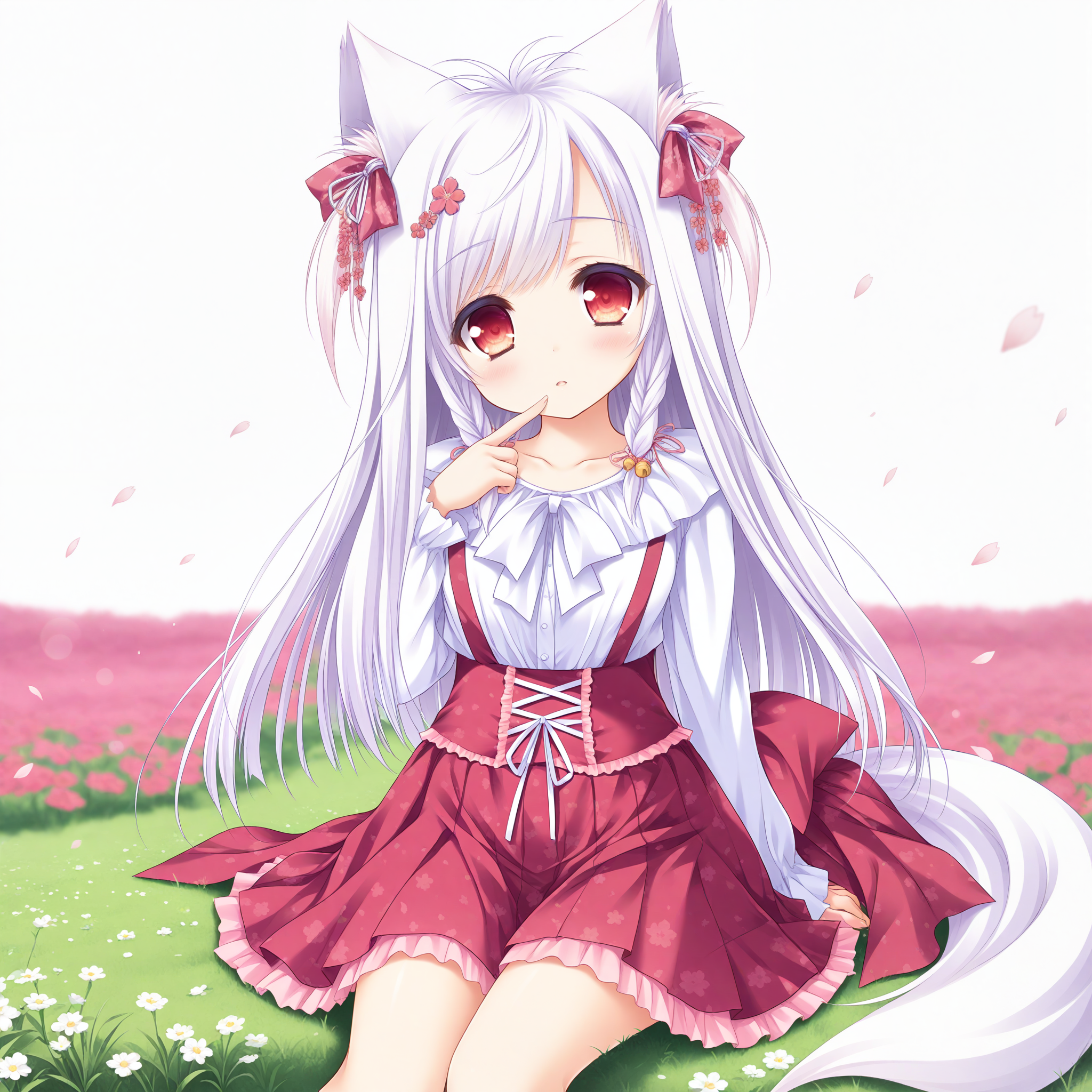 Mito Kohaku,hair flower,hair ornament,hair bow,hair ribbon,fox ears,fox tail,