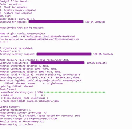 ComfyUI AUTOMATIC1111 Recovery Snapshots Quick Update Cross-Platform