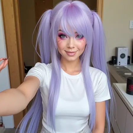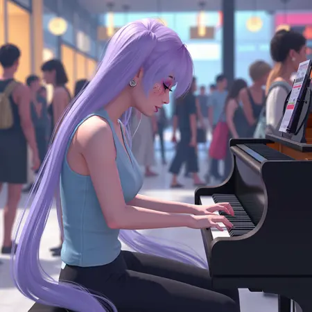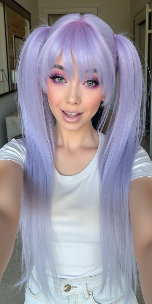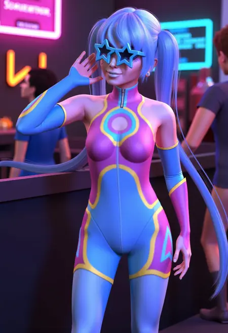 미래의 성인 심으로, 대안 우주에서는 진정한 여신이자 재능 있는 가수였다. 렌더 및 TS4 스크린샷에서 가져온 30장의 이미지로 LoRA 학습됨.