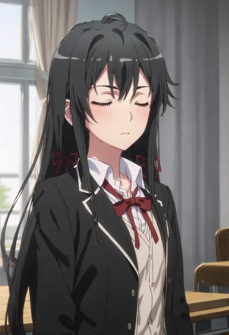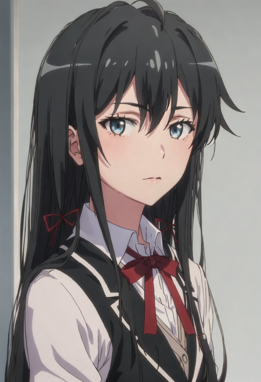 トリガー語は yukino_yukinoshita_yahariorenoseishunlovecomewamachigatteiru であり、削除されたタグは black_hair, long_hair, ribbon, blue_eyes, hair_ribbon, red_ribbon, bangs です。あるとき(例:髪の色など)特徴が安定しない場合は、これらのタグをプロンプトに追加してください。