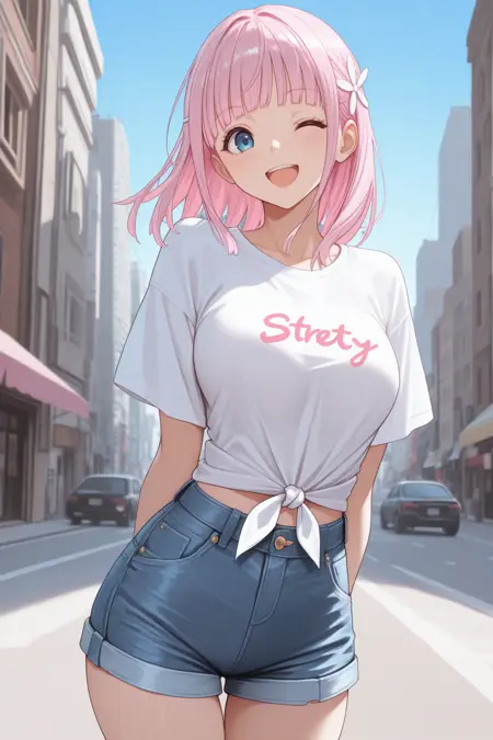 触发词为 "somiki",且必须包含 "粉发、中长发、齐刘海、蓝眼睛"。