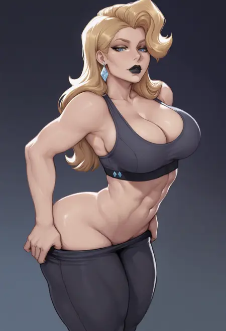 캐릭터 태그: 금발 머리, 긴 머리, 비대칭 머리, 파란 눈, 검은 입술, 다이아몬드 귀걸이