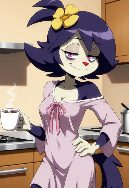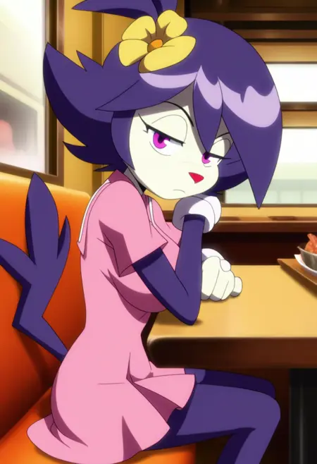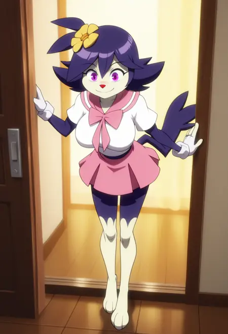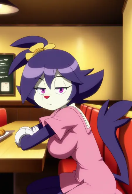动漫版《顽皮豹》2020中的Dot Warner。我更喜欢1990年代原版卡通的幽默与歌曲,但动漫版Dot的魅力不容否认。对于Pony,你不需要“furry female”(无引号)关键词。为了获得更一致的体毛颜色,请使用关键词“body fur, purple fur,”(无引号)。