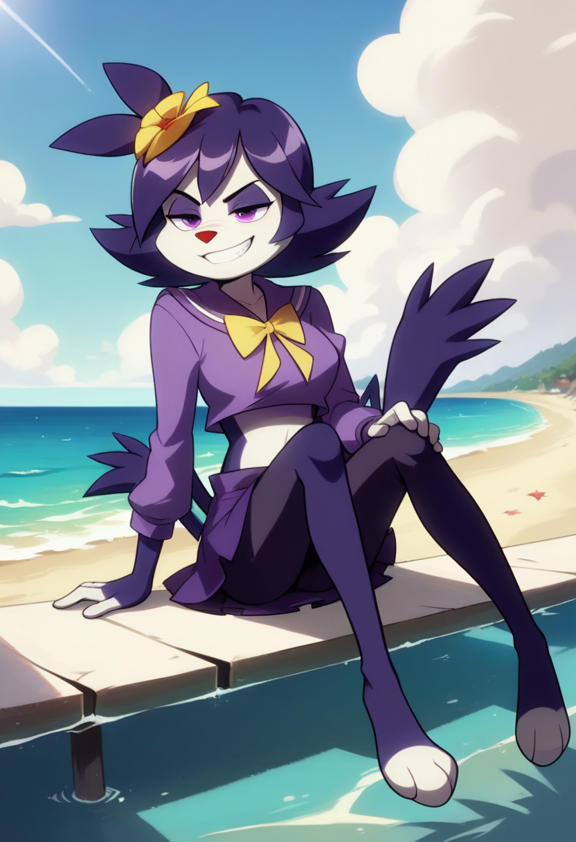 Anime Dot Warner from Animaniacs 2020. I prefer the original 1990s cartoon's humor and songs, but Anime Dot's sexiness cannot be denied. For Pony, you don't need "furry female" (no quotes) keywords. For more consistent body fur colors, use keyword "body fur, purple fur," (no quotes).