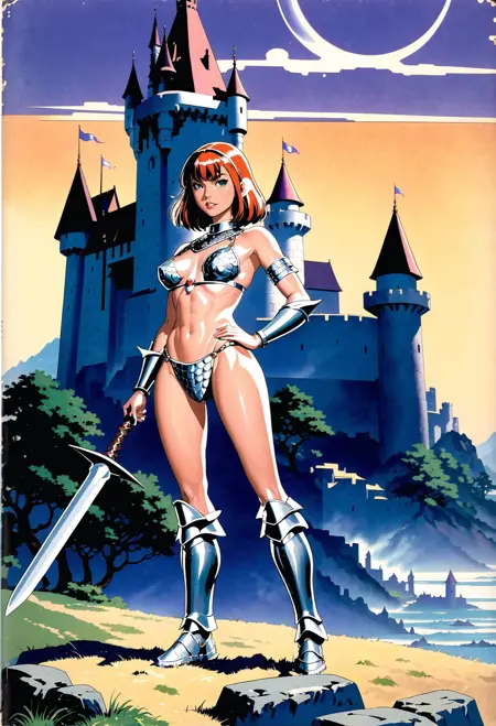 一种模仿纸浆奇幻书籍封面艺术风格的LoRA。LoRA各层的权重经过调整,以确保不会完全取代你所使用检查点的风格。