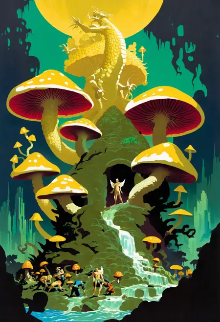 这是一个在纸浆奇幻封面中发现的元素列表,用于生成SD动态提示。还包含了一系列奇幻生物群落。