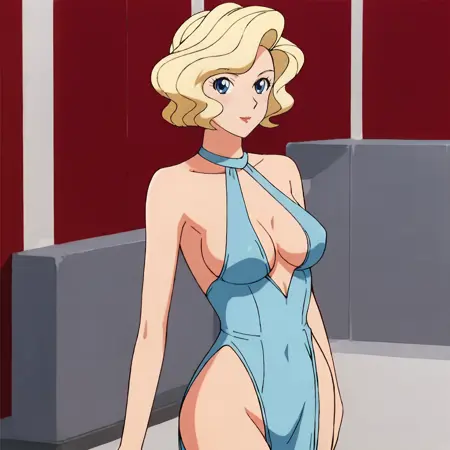 트리거: Lori&LoruMazinKaiserBlackBikini, 1girl, highleg swimsuit, highleg bikini, blonde hair, medium breasts, black bikini, short hair, blue eyes, navel, underboob