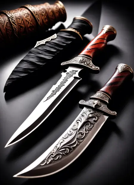 This demonstration dives deep into the intricacies of three distinct LoRA trainings. Each model has been meticulously trained on a unique dataset of 200 knives, captured in the professional environment of our partner, NoramePhotography Studio. The visuals span from pure white studio shots to rustic wood settings, glinting coins, and fantasy-inspired indoor decor.