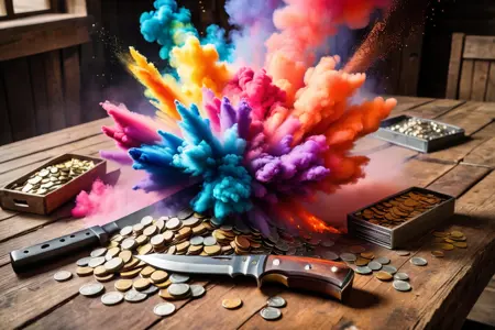 This demonstration dives deep into the intricacies of three distinct LoRA trainings. Each model has been meticulously trained on a unique dataset of 200 knives, captured in the professional environment of our partner, NoramePhotography Studio. The visuals span from pure white studio shots to rustic wood settings, glinting coins, and fantasy-inspired indoor decor.