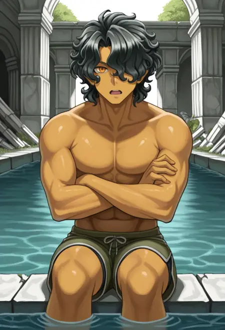 中长发,古铜色男性,