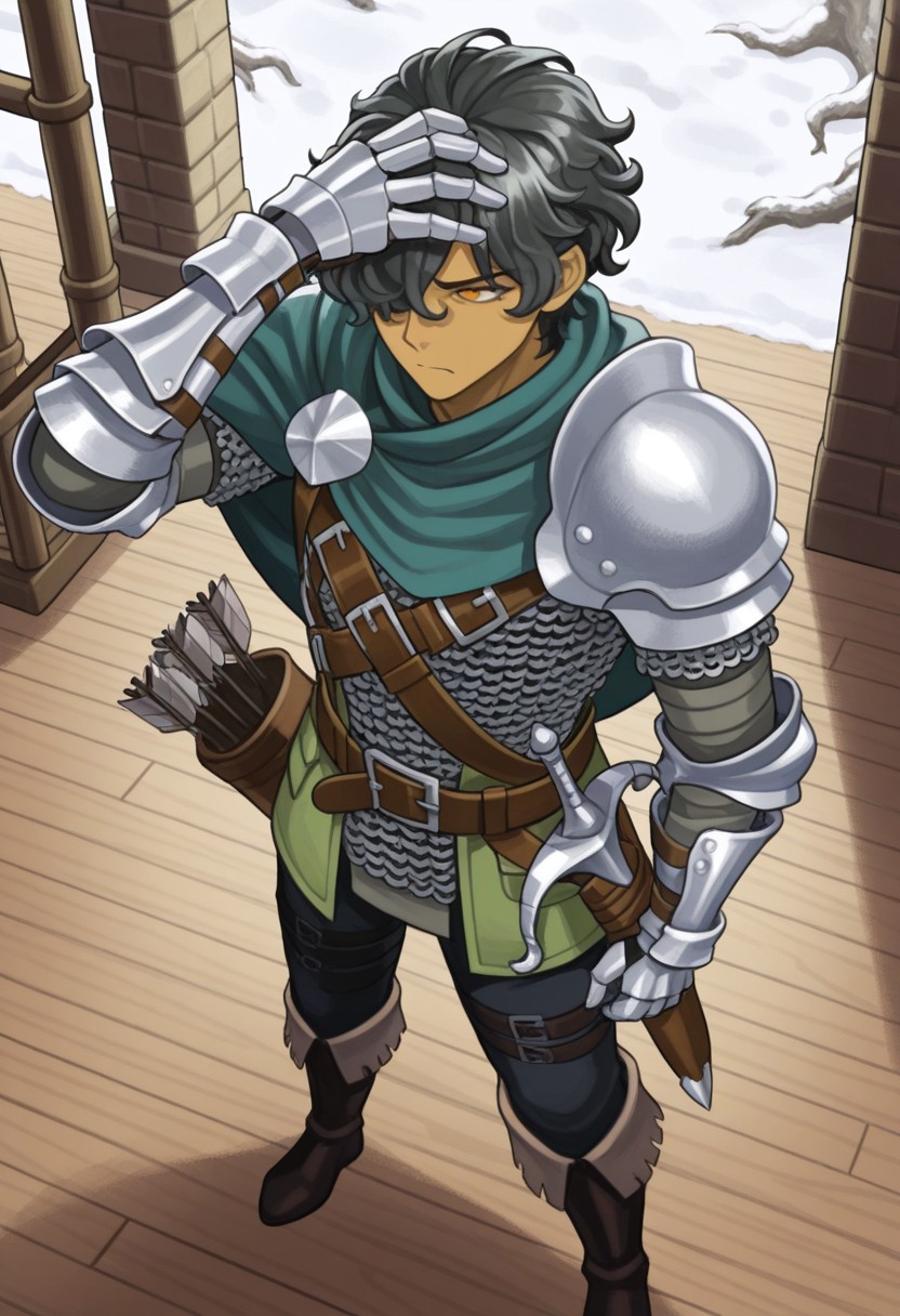・绿色上衣将取代他原来的锁子甲内层。建议在正向提示中添加 [ 链甲上衣 ] 以防止此情况发生。