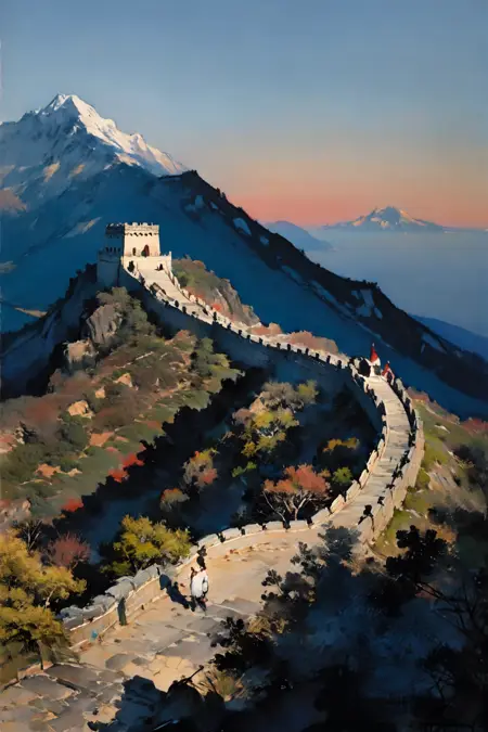 得益于对大师水墨画的充分学习,此模型水墨笔触风格明显,同时也融合了部分西方油画美学,显现出一种独特的油墨质感。