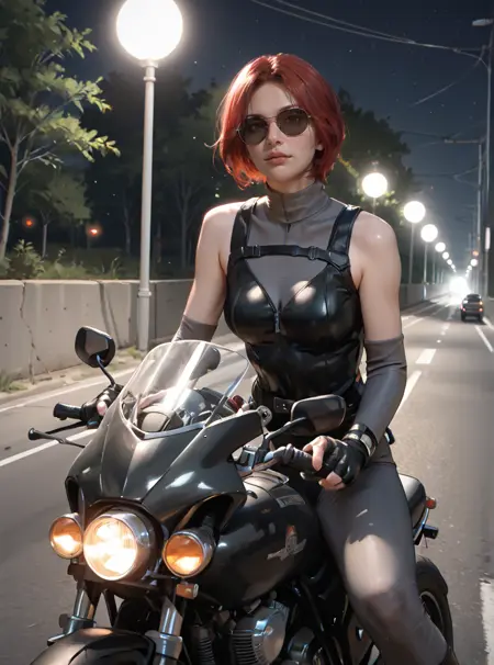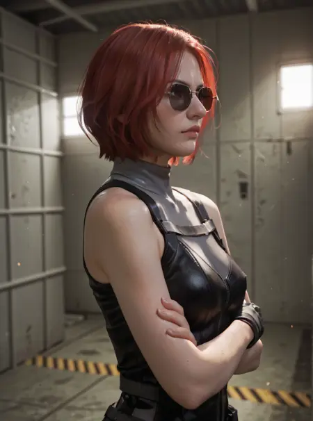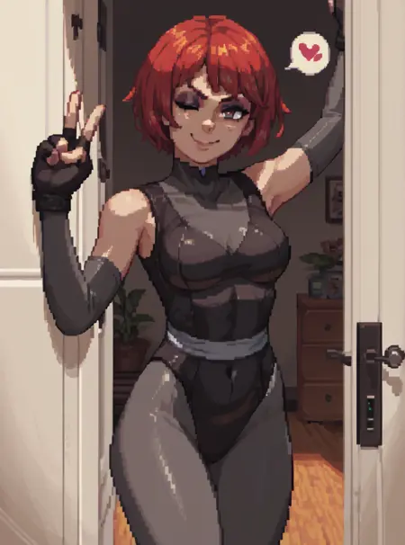 ReginaDin, 1girl, red hair, short hair, black bodysuit