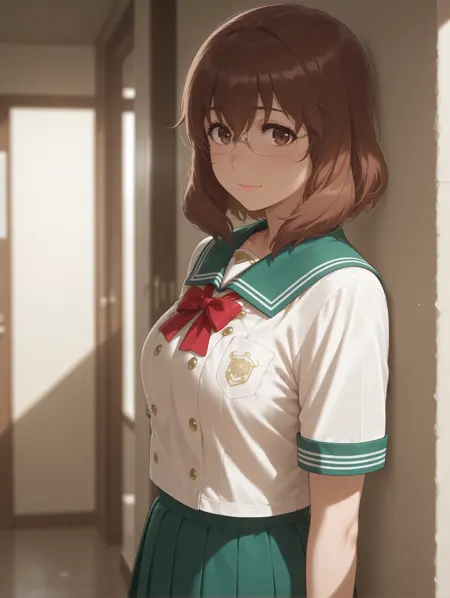 1소녀, lora:IL-Mina:0.8 미나, 갈색 머리, 단발, 갈색 눈, 안경