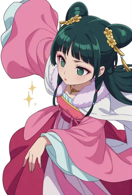maomao_cnr,green hair, long hair, green eyes, flat chest,