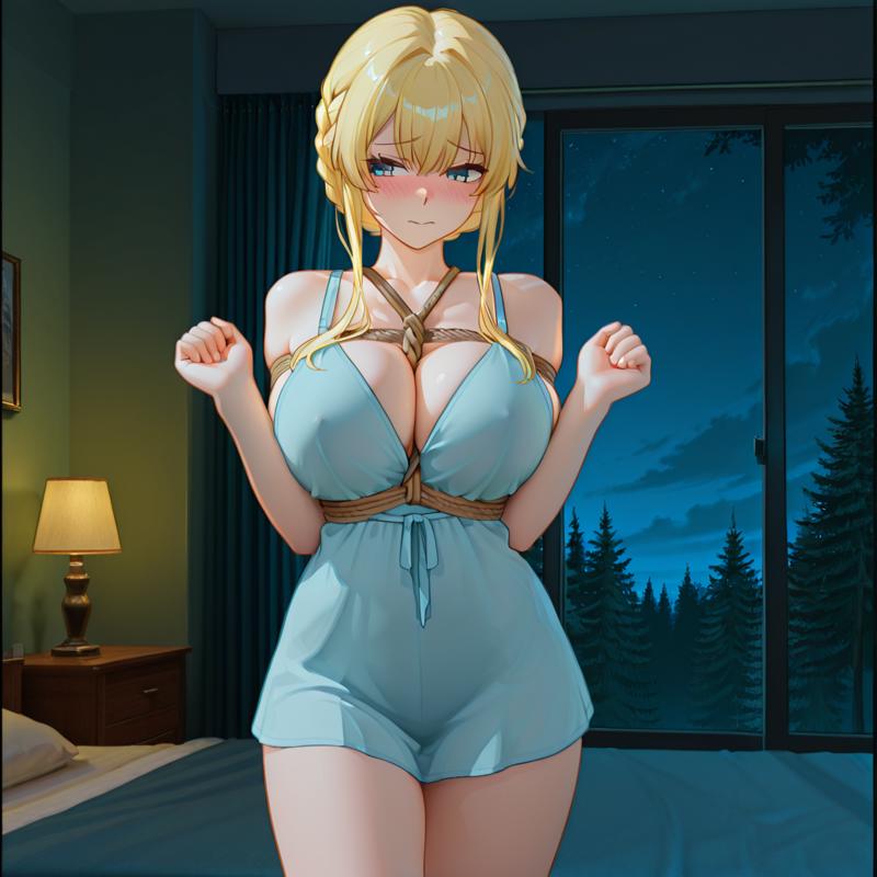 バリエーションを得るためにこれらのプロンプトを使用できます: 股間のロープ、縛られた+部位、ダブルV、中指、こぶし