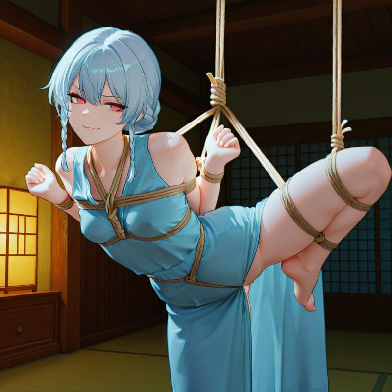 TenguTie,1girl,rope,shibari,bound, 懸吊