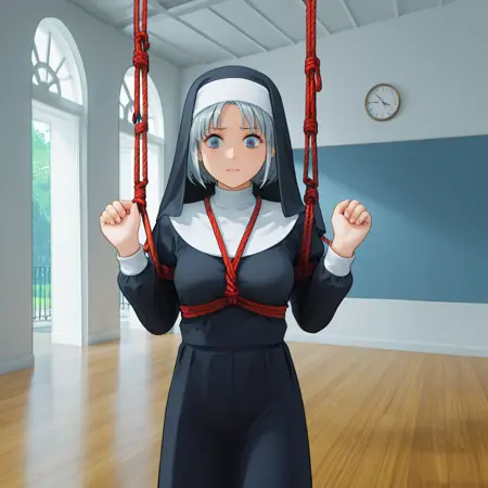 TenguTie,1girl,rope,shibari,bound, suspension,midair