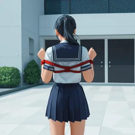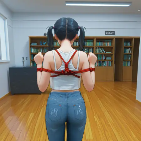 TenguTie,1girl,rope,shibari,bound, from behind,from above