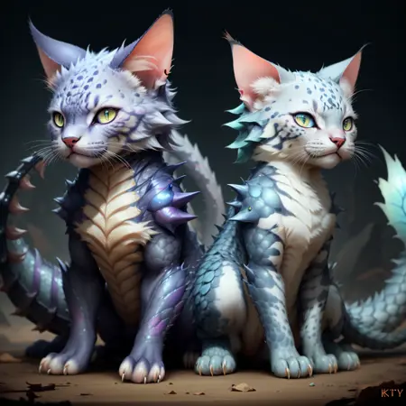 • 训练词权重 (dragondna:0.8):控制对生物生理结构的影响,会导致表型突变(该词效果过强,若权重全开,可能将主体完全转化为纯种猫)