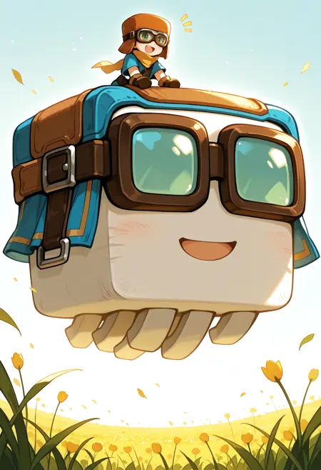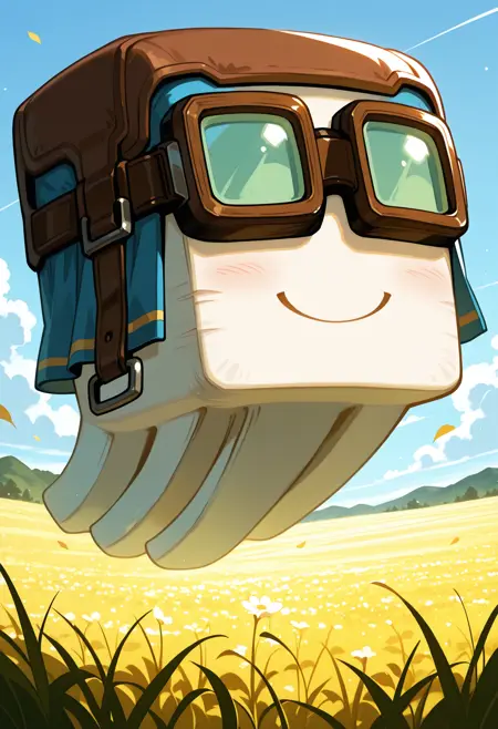 hgharnessed,no_humans,goggles,closed mouth,smile,floating