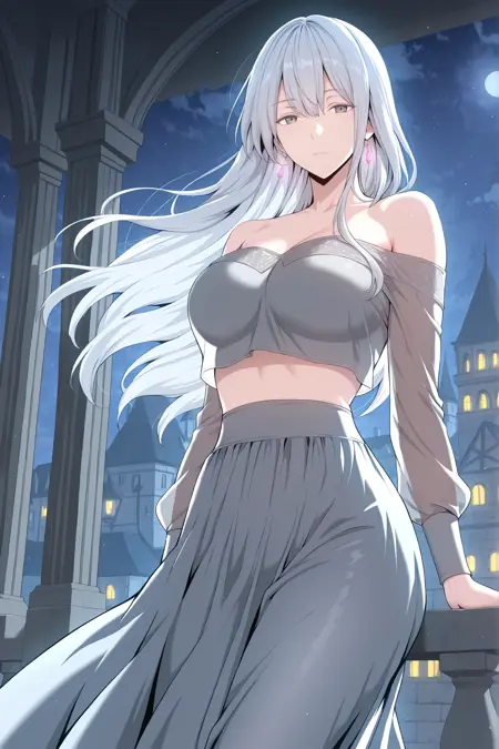 长发版本:varayaurae, 1girl, mature female, white hair, long hair, bangs, grey eyes