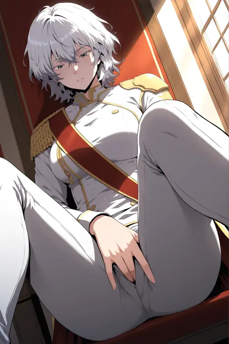 1️⃣ 白色军装,金色镶边,肩章,红色腰带,红色斗篷,白色长裤,白色靴子