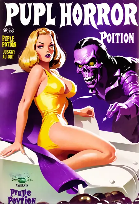 A LoRA trained on pulp horror images, weighted in such a way that it shouldn't overpower the style of the checkpoint you're using. Goes well with my pulp horror visual element wildcards.