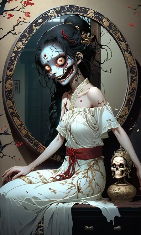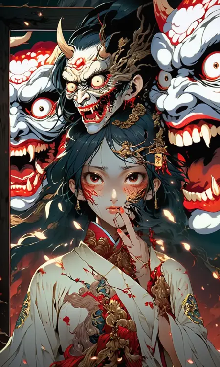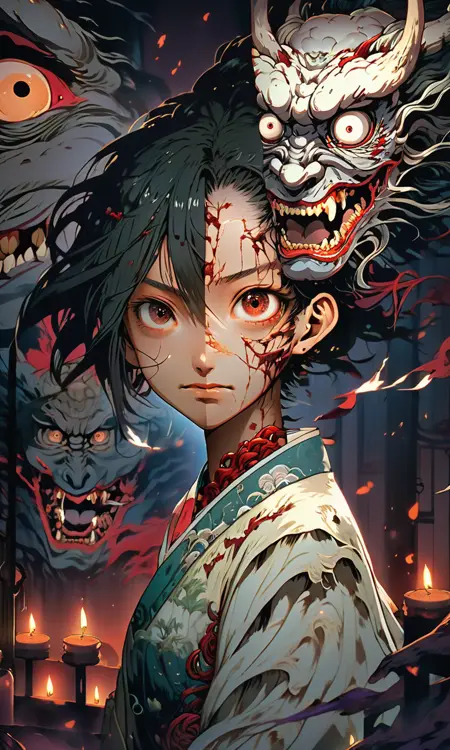 Generate girl with girl face and ghost face.