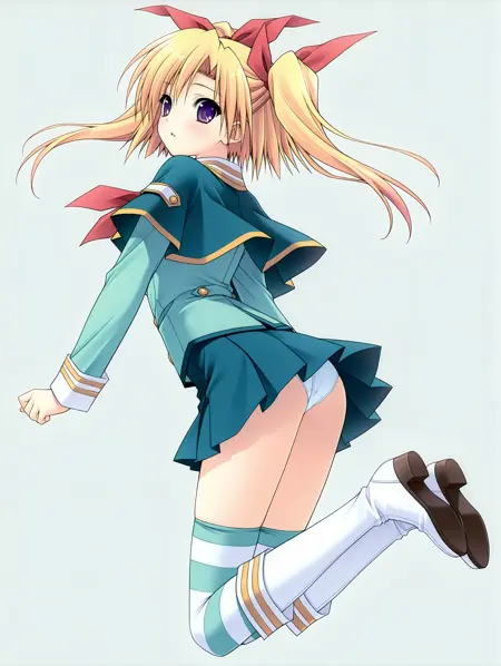 服装词:aki_clothes, 长袖, 小披肩, 绿色衣物, 衬衫, 百褶裙, 条纹长筒袜, 白色膝靴