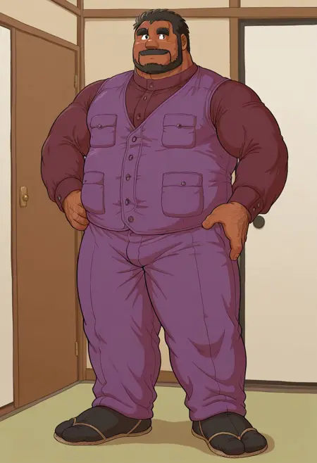 - 더럽고 낡은 아저씨, 수염과 튀어나온 배를 맡은 인물. 사실 더 흐물흐물하고 체지방률이 높게 그리려 했지만 기술이 따라주지 않아 포기했다. 키퍼 팬들, 미안하다. 응, 그래도 충분히 뚱뚱하긴 하지. 핵심 포인트는 둥근 수염, 풍성한 눈썹, 튀어나온 배. 본편에서는 고로를 중심으로 한 이야기보다 오히려 다른 캐릭터들의 이야기에 섞여 있는 것이, 신뢰할 수 있는 성인 남성의 이미지를 더 잘 부각시켰던 것 같다. 진정한 건설업자라고 하면, 혹은 가정의 독재자라고 하면, 결국 그런 게 더 신뢰감 있게 느껴지는 것일까? 한자도 모르고, 국수와 밥의 조합 때문에 화를 내고, 때로는 오라네코로 변신하는 아버지가 귀엽고 좋다고 생각하는데... "젊은 시절의 아버지도 보고 싶다!"는 의견도 몇 개 받았는데, 분명 맛있어 보일 정도로 멋진 형이었겠지. 오라오라하면서 젊었으니 지금보다 정력이 훨씬 강했을 거야……………………… 하지만 지금보다 더 강했으면 확실히 상대를 파멸시켰을 텐데.