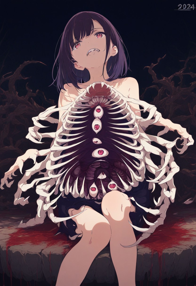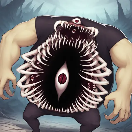 Built-in,open ribs, guro ,open mouth, extra mouth,many horns on stomach