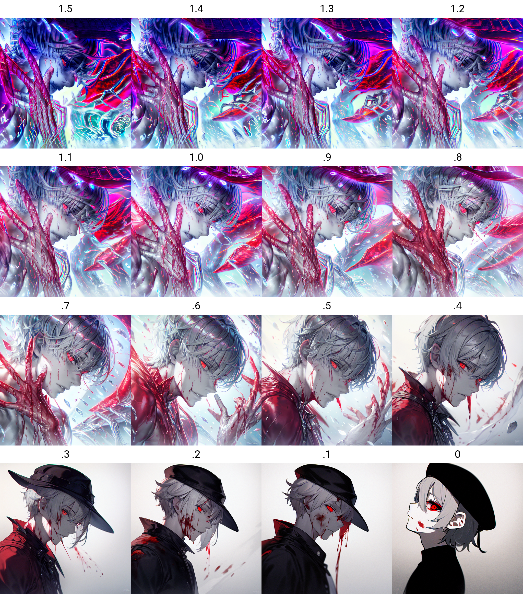 请注意,数据集极其有限,因此该模型具有一定的实验性。虽然在权重为1.0时,它能很好地还原原作,但权重较高时则非常不灵活。
