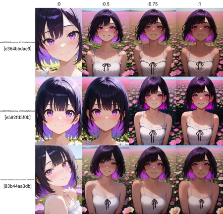 중요! "Uniform" 스케줄 유형을 사용할 때 입술 부분에 아티팩트가 생기는 것으로 나타났습니다. 이는 CivitAI 온라인 생성기에서 가장 인기 있는 유형이므로, 다음 선택지를 고려해 주세요: