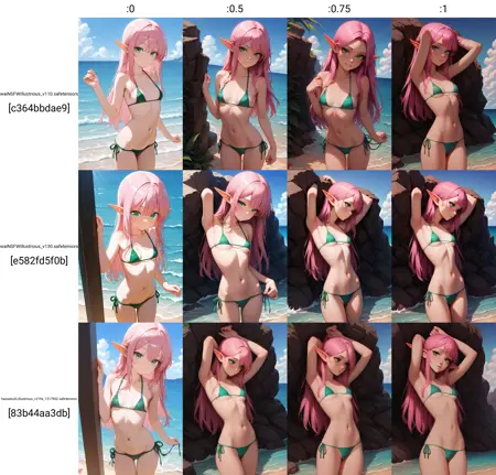 이 LoRA는 Pony Diffusion V6 XL 모델을 사용해 생성한 저의 모든 이미지로 학습되었습니다. 따라서 다소 성적인 측면으로 치우칠 수 있습니다.