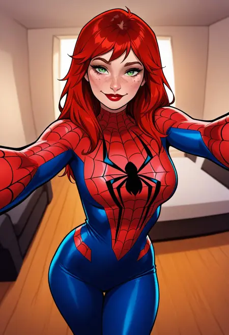 漫威/蜘蛛侠中的玛丽·简·沃森,主要基于漫画《神奇的玛丽·简》、《神奇的蜘蛛侠》以及一些粉丝艺术作品。权重使用1-0.8。