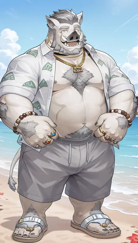 최고의 프롬프트: 돼지 소년, 회색 눈, 가슴 털,