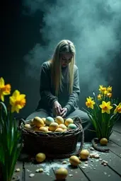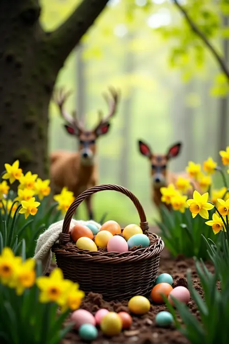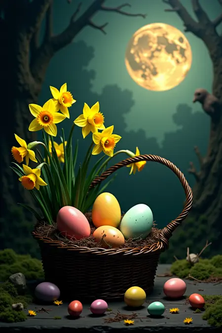 Happy Easter! (colourful or painted)Eggs in baskets, bunches of daffodils, and its also quite good at giving characters rabbit ears, rabbit faces, or even entire rabbit heads. Also, anthropomorphic rabbits are there for your furry delectation, too!