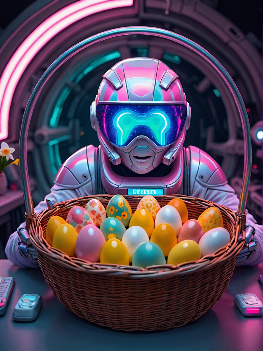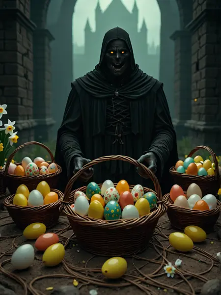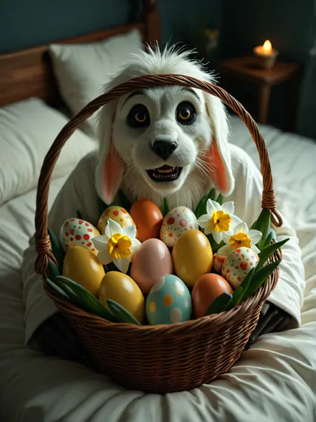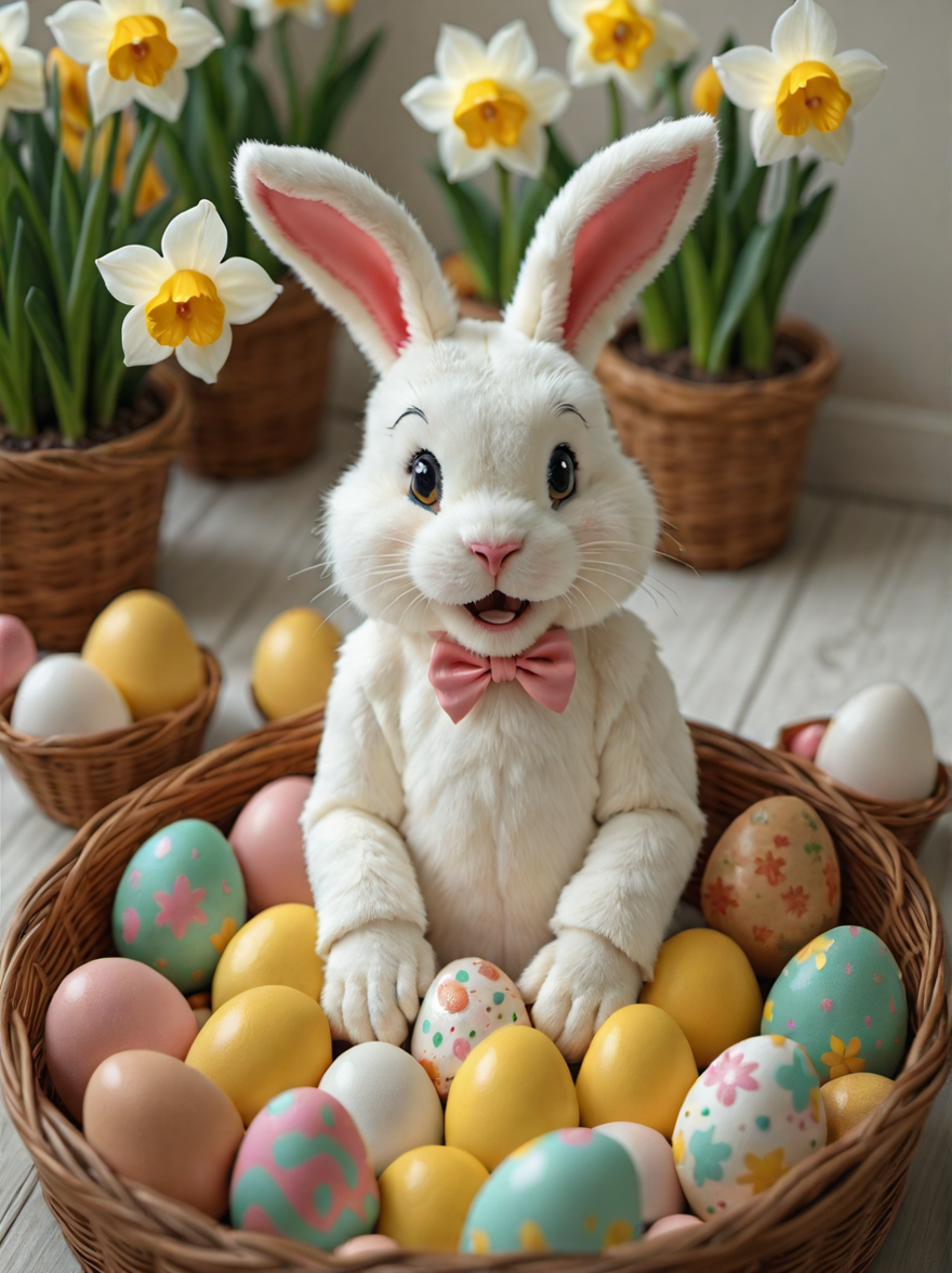 해피 이스터! (다채롭거나 그림으로 칠해진) 바구니에 담긴 알, 수많은 봄난초, 그리고 캐릭터에게 토끼 귀, 토끼 얼굴, 심지어 전체 토끼 머리를 잘 만들어냅니다. 또한, 인간화된 토끼들도 여러분의 털茸을 위한 즐거움으로 존재합니다!