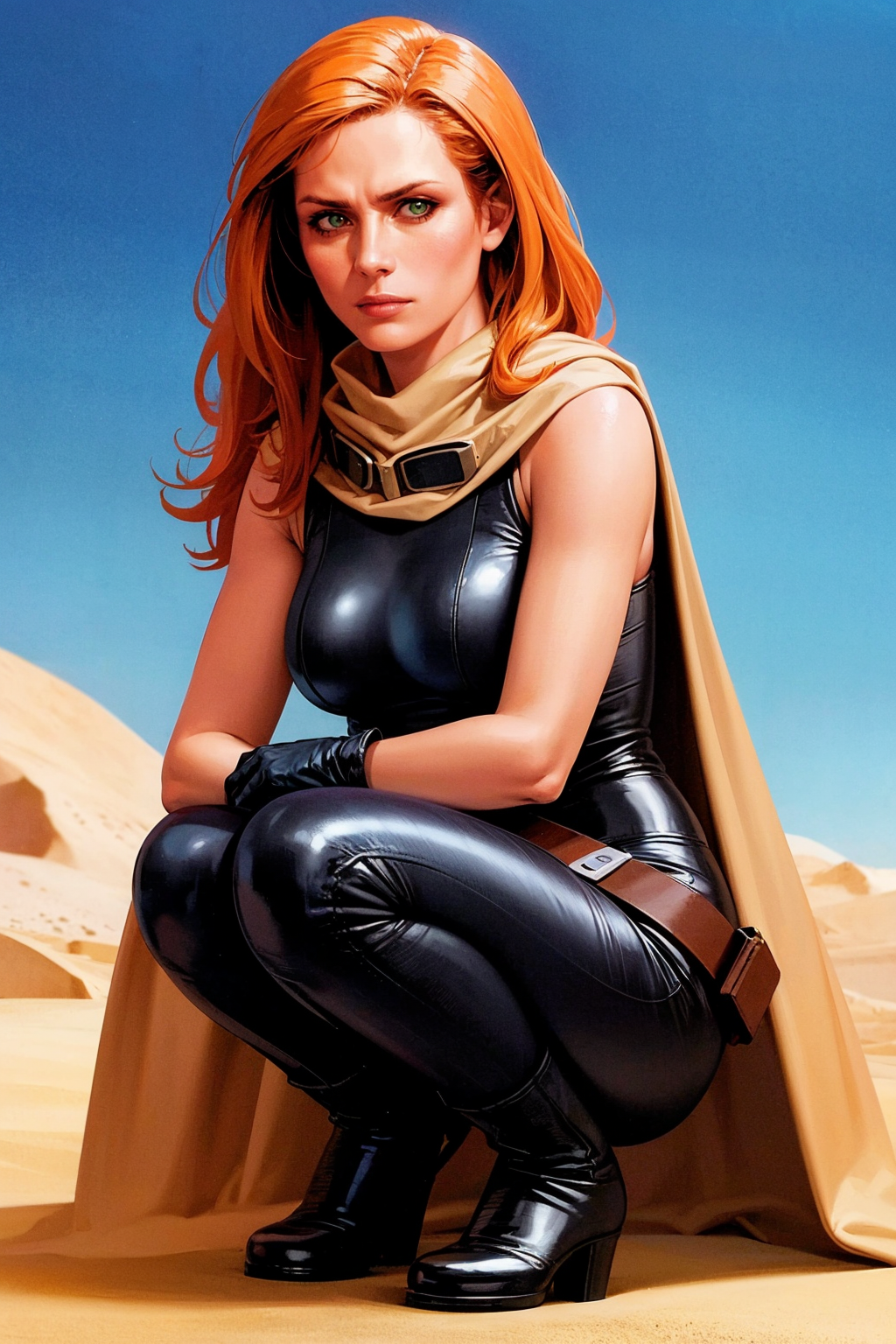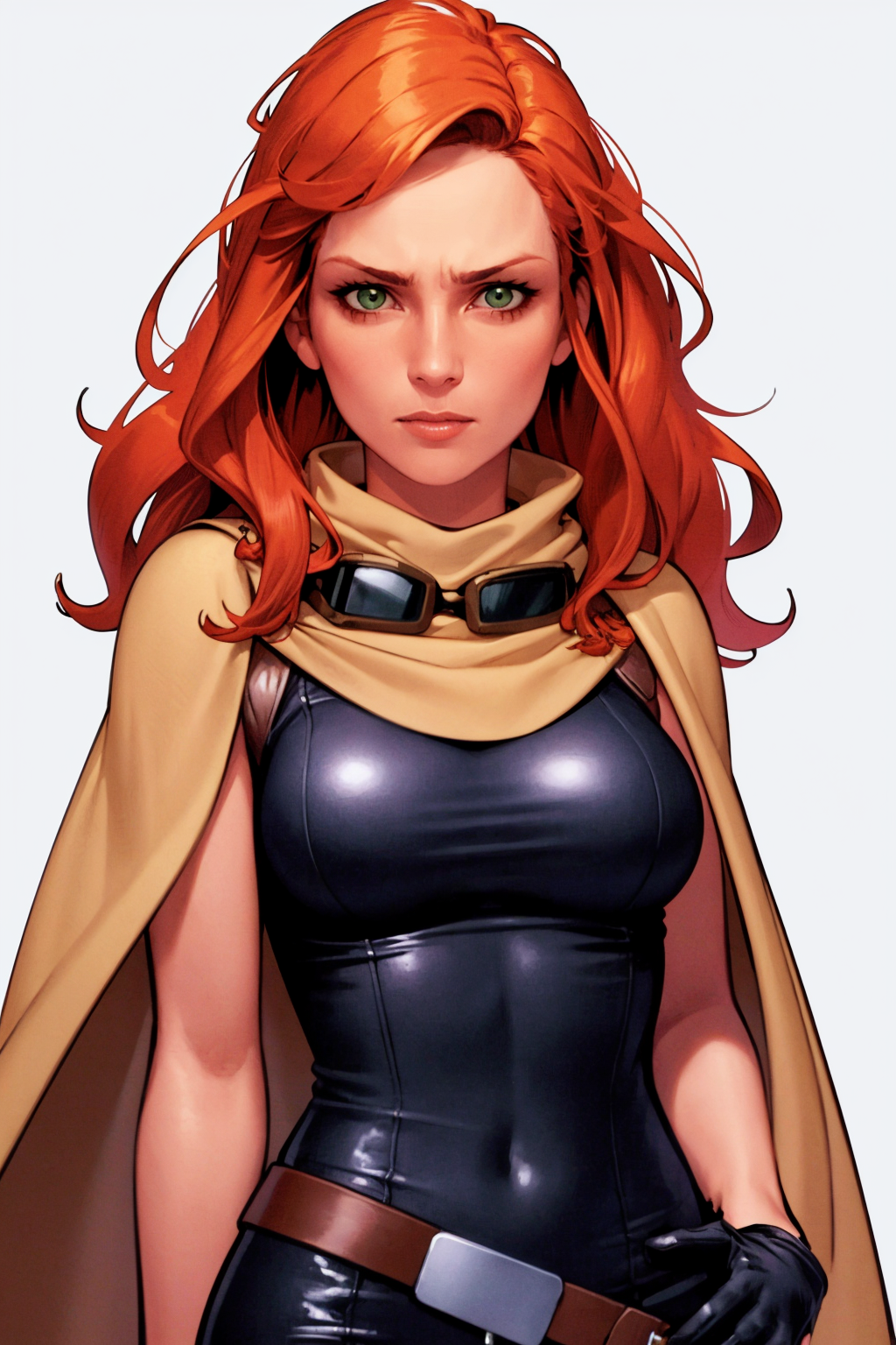 Basic prompts : 1girl, marajade, orange hair, green eyes, long hair