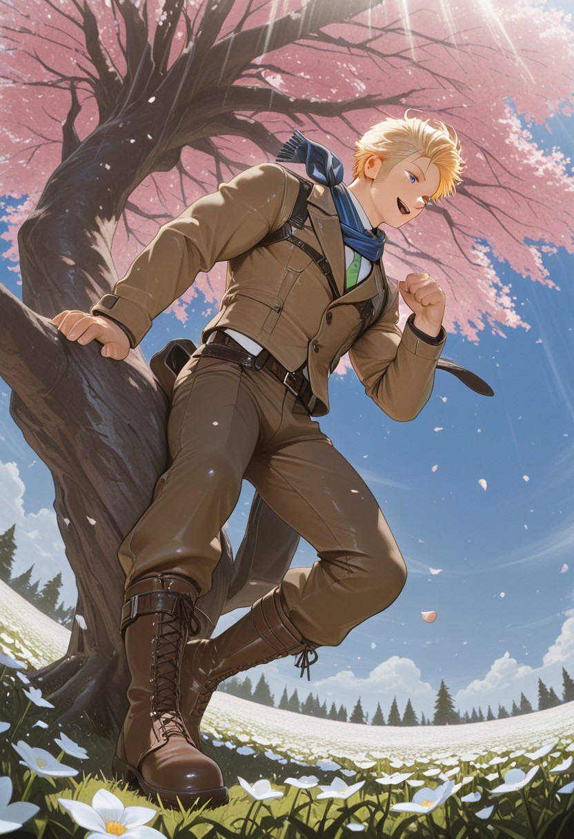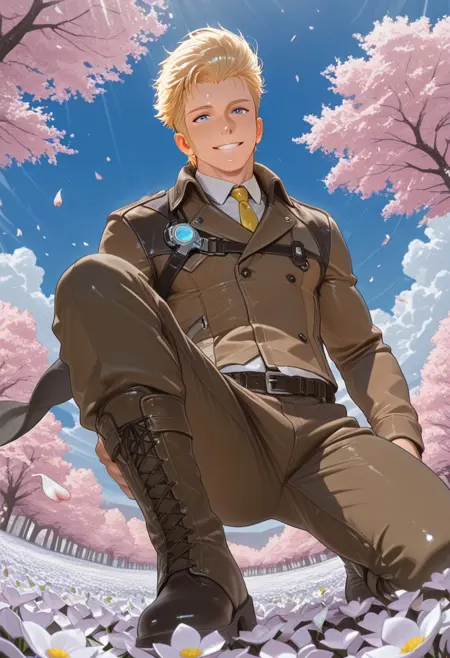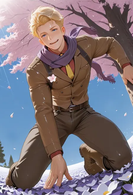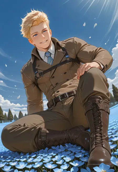 1boy, mature male, muscle body, tagatameedgar, blonde short hair, blue eyes, sideburns