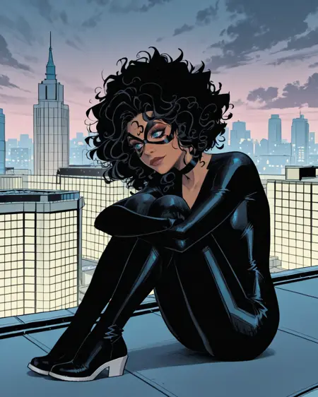 费利西亚·哈迪,即当前终极宇宙中的新黑猫。她出场次数不多,大多数由马尔科·切凯托绘制,因此风格会非常接近他的画风。但我想要一个她的LoRA,不想等更多出场。