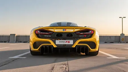 “Fury”V8发动机采用坚固的铸铁缸体、铝合金缸盖搭配高性能气门组件、锻造内部零件,以及两台可承受高达23 psi增压压力的Precision涡轮增压器。动力通过CIMA 7速单离合自动手动变速箱传递至后轮;而在限量版F5-M Roadster车型中,则采用更注重驾驶体验的6速手动变速箱。底盘具备极高的抗扭刚度(52,000 Nm/度),对高速稳定性至关重要。空气动力学设计强调气流平顺,标配车型配备显著的前分流器、后扩散器和固定式尾翼(风阻系数Cd=0.39),另有“赛道套件”以及“进化”包提供的全面升级方案。操控由双叉臂悬挂搭配可调Penske螺旋弹簧减震器(进化版为自适应阻尼)、强劲的Brembo碳陶瓷刹车与米其林Pilot Sport Cup 2轮胎共同实现。驾驶舱以大量碳纤维打造,配备标志性的“方向盘杆”式方向盘与全数字仪表盘。
